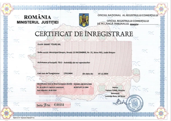 SMART TOURS SRL este inregistrata in Registrul General al Operatorilor Datelor cu Caracter Personal sub numarul 16659