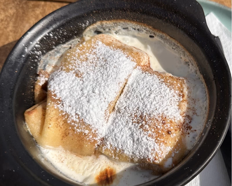 First food tasting will include a bite of local appertizers, 1st course and dessert, plus a few sips of local brandies